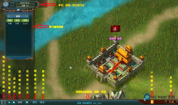 2、你的城市列表(势力建筑列表):这里管理你所有的地盘。