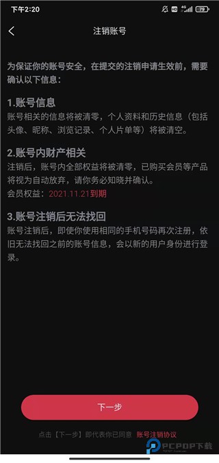 在设置界面能看见醒目的「注销账号」按钮,果断戳进去。