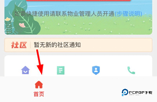 1、打开 “亲邻开门” APP,手指点一下屏幕最下方那个 【首页】。