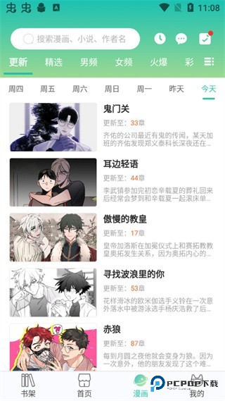 4、在漫画栏中,会显示本周或者是当天更新的漫画;