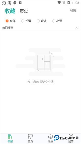 2、在书架内会显示你收藏过的长漫、短漫以及小说;
