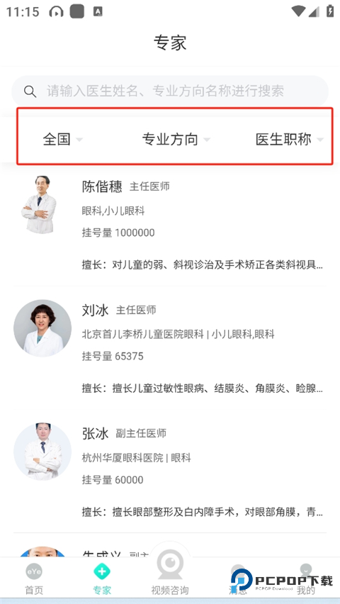 2、在专家板块,可以了解全国各地的专家和主攻方向