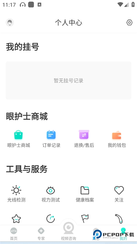 5、可以在我的页面了解自己的健康档案,也可以在眼护士商城购买物品