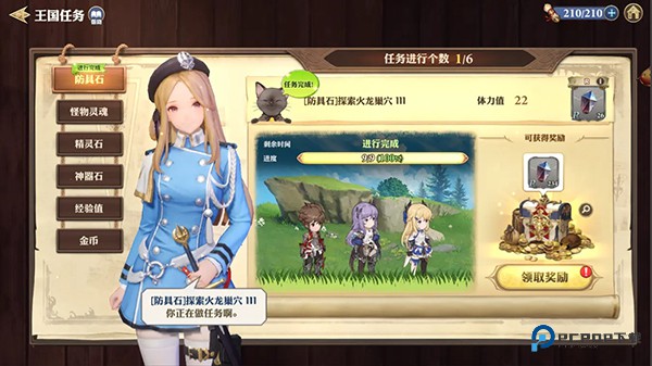 4、已接受的王国任务可在游戏画面的任务区域确认,需要注意的是,不能同时进行多个王国任务哦,完成王国任务时获得奖励,根据概率也可获得较大的奖励,设置了反复的话可自动再次进行当前任务。