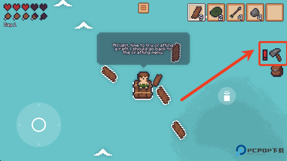 8、比如拾取到两块木板就可以制造一块大木板,可以扩大木筏的面积。
