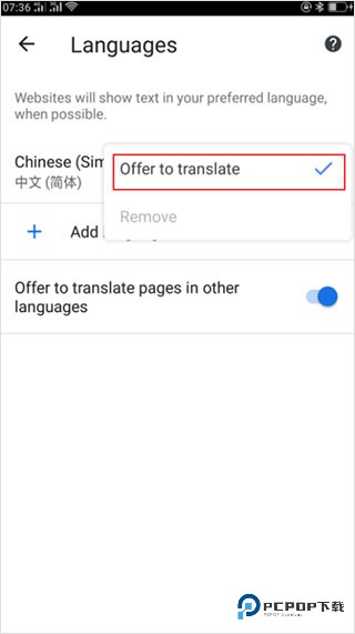 7、最后在弹出的菜单选项中选择offer to translate功能,这样手机浏览器就显示为中文了