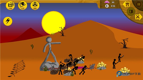 4、控制你的军队组编或出动各个战斗单位,你可以全权控制所有火柴人。