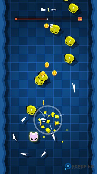 2、点击屏幕即可开始游戏,玩法很简单,玩家将控制一个旋转的陀螺,利用旁边锋利的刀片去击杀敌人;