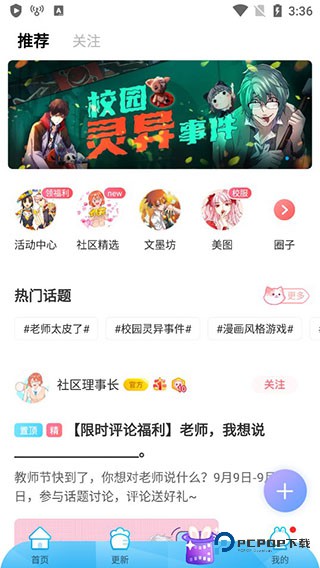5、切换到漫画台,这里是有关该软件的热门话题的,还包括美图、社区精选等。