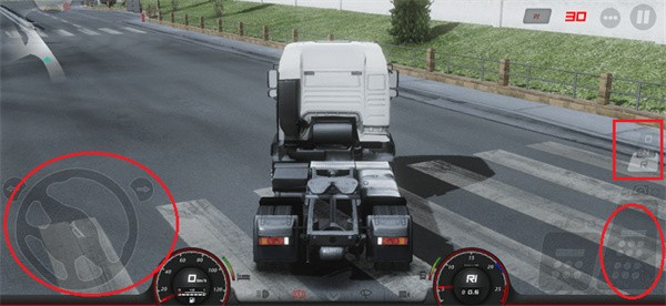 6、然后就会进入第一视角,界面都是操作设置,左边控制方向,右边控制油箱门刹车;