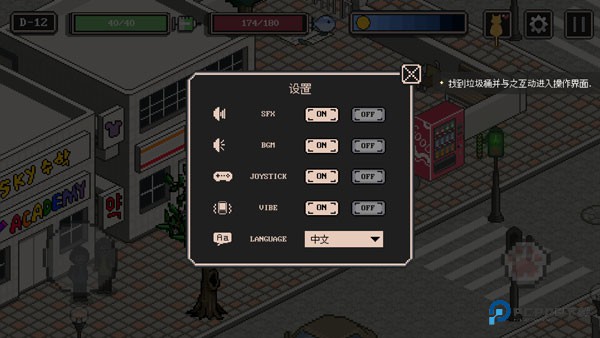 1、多元化的玩法,像素风格游戏界面,将行走在城市的每个角落;