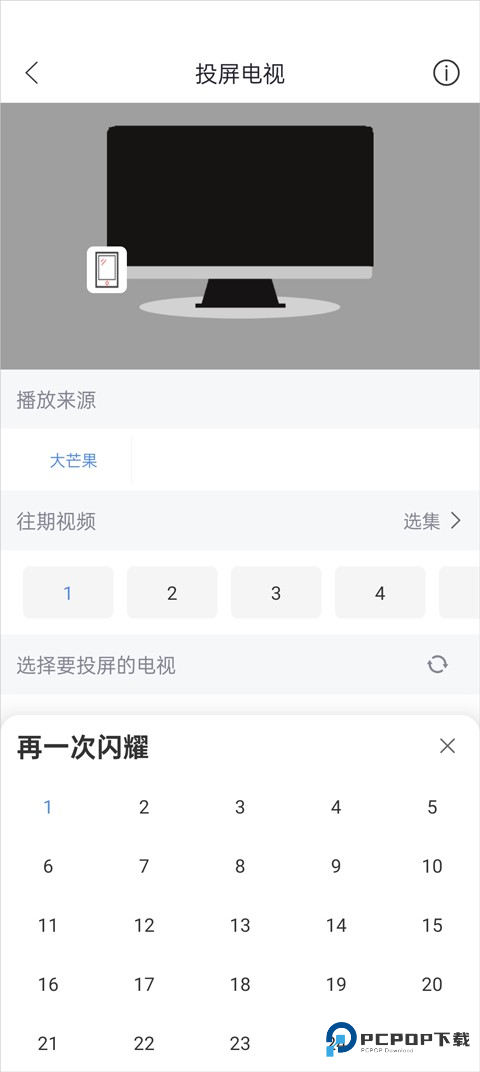 最后,单击屏幕投影图标后,系统将重定向到投影到电视的页面。在这个页面上,用户需要选择他们想要投射的剧集数量,然后等待系统连接到他们的电视设备。一旦连接成功,所选的电视剧就可以在电视上播放了。