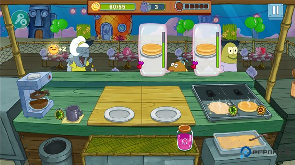 在海绵宝宝餐厅模拟器游戏中可以体验海绵宝宝,蟹老板,章鱼哥,珊迪和派大星带来的全新独家海绵宝宝故事。在游戏中逐步前进并解锁新关卡时,您会在有趣的故事情节中进行游戏。