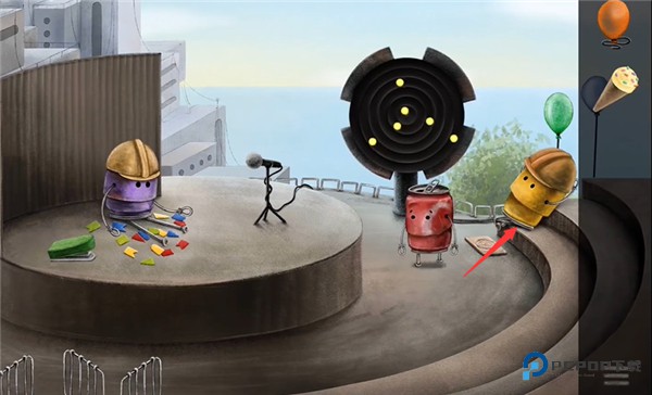 21、将冰淇淋以及气球给场景内的易拉罐,需要两次给。