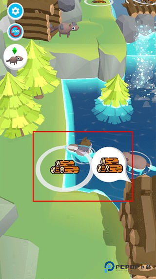 2、操控海狸拾取树木,数字代表拾取树木的数量