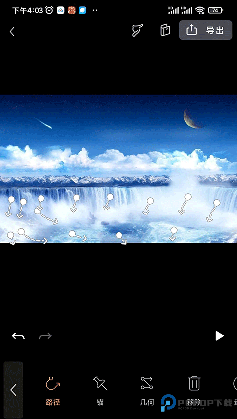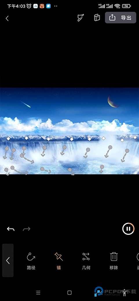 4、点击“锚”,在人像周围点一几下,这样人像以外的地方就不会动。