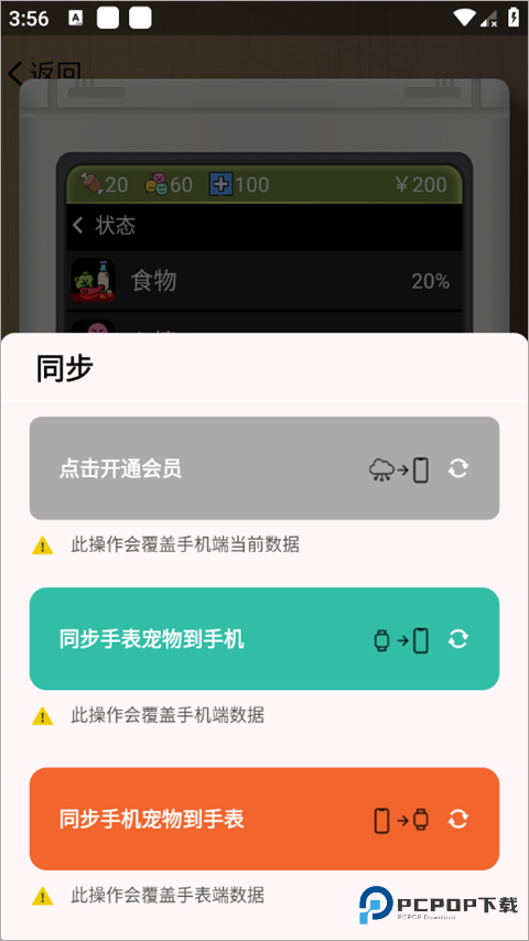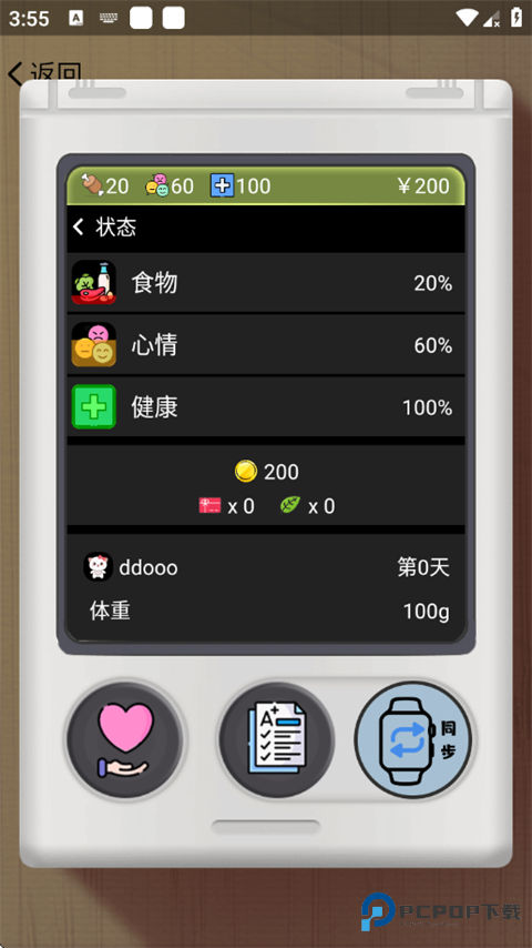 当饥饿值低于 40% 出现哭脸表情时需尽快喂食,生病状态需使用医疗箱治疗。