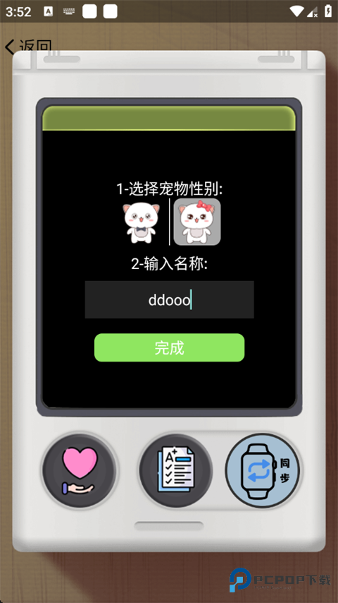 2、滑动选择宠物性别,输入宠物名字后按 【确认】。