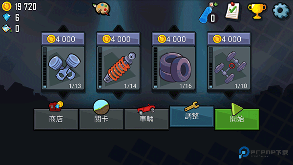 6、在关卡中收集的金币奖励可以升级自己的赛车引擎,增加赛车的性能;