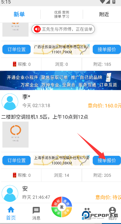 2、若认为任务匹配且可行,可点击页面中的“接单”或“报价”按钮。