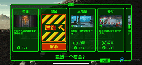 1、避难所里电力、水和食物这三大件,全都靠玩家来张罗,保障居民活下来是头等大事。
