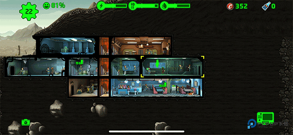 3、造人的同时可以进行房间的规划,一个宿舍只能容纳八个人,所以优先造宿舍,到最后把食物跟水造成三联的房间即可,到达一定人口的时候会解锁储藏室,这边不推荐造,首先是本身避难所带有 10 的储藏空间,前期小人不探险,就没有很多东西需要储藏,武器衣服就装备给小人,这样完全不会有库存不足的现象。