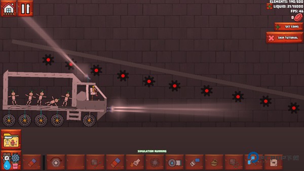 5、玩家可以在汽车行驶的过程中,在墙壁上添加切割齿轮,来切割汽车;