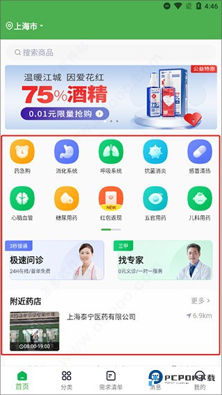 6、软件中将所有的药品进行了分类,用户可以更快的找到自己想要的药物。