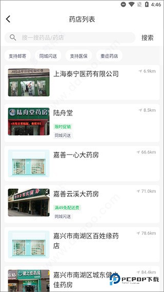 4、同时可看到附件所有的药店来对其进行选择购买药品。