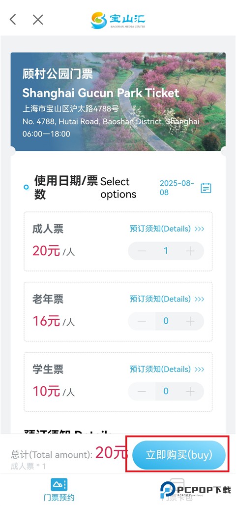 2、进入后,根据自己的需求选择票价,下滑选择已阅读,并点击立即购买。