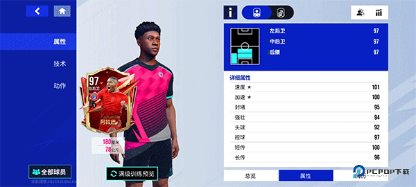 这张阿拉巴属于速度飞快、能攻能守的全面边后卫。放在左后卫位置上,或者放到后腰位置上都行。