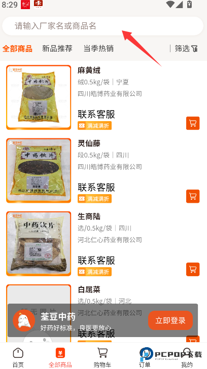 2、于页面顶部的搜索框内输入具体药品名称,系统将快速展示相关商品列表。