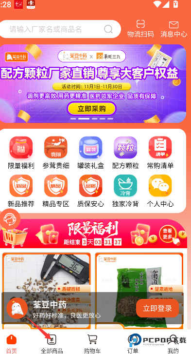 1、在主界面点击“全部商品”入口,进入完整的药品分类浏览页面。