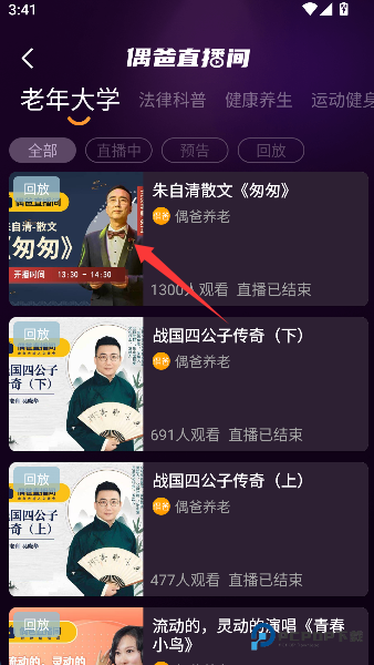 2、在琳琅满目的直播列表中挑选心仪内容,就像为长辈点播一场专属的知识盛宴或休闲时光。