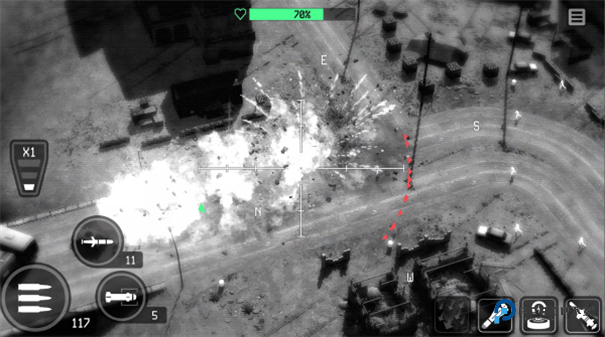 战争无人机是一款无人机飞行射击类手机游戏,玩家将在一线战场操作射击游戏中的常客掠食者无人机,发射挂载的机、火箭与导弹对地面目标实施精确打击,以确保自己的地面部队成员能够安全完成任务目标。战争无人机以无人机第一人称视角与高度拟真的热成像画面渲染,让玩家犹如真的在操作无人机实行对地打击,感受最具沉浸感的战斗体验,对战争无人机感兴趣的话,就快快下载游戏体验吧!