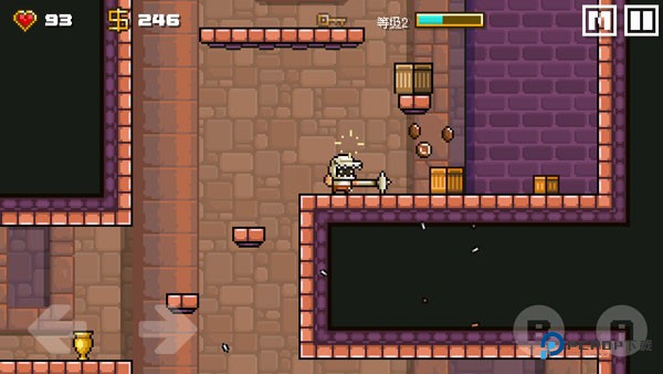 游戏的操作不是很难,在游戏的屏幕左下方有两个方向键控制左右。B键是攻击键,A键是起跳键,长按是下跳。大家注意不要被怪伤到。