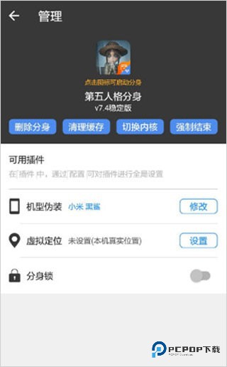 5、建立好分身后,点击管理,可进行的操作有删除分身、清理缓存、切换内核、强制结束。