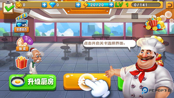 2、进入关卡地图后,选择初始关卡正式开启餐厅运营旅程。