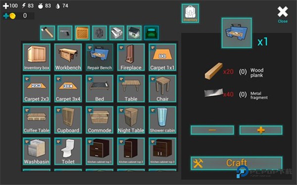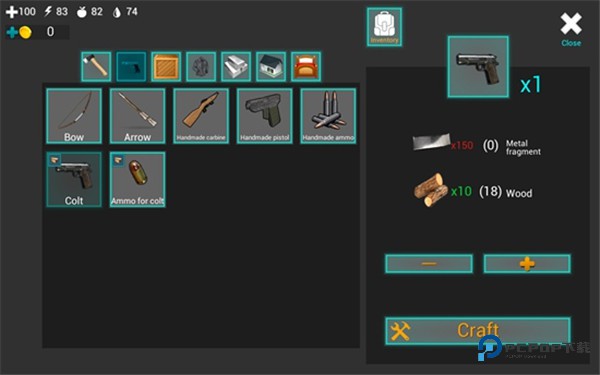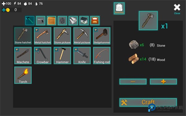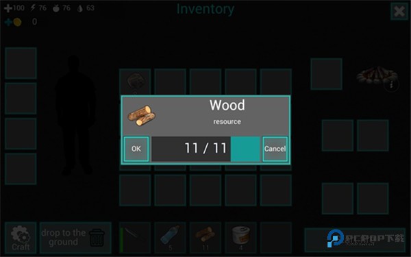 不过现在我们首先要做的还是一个火堆,制作一个火堆需要7个木头,点击火堆,然后点击右下角的“Craft”,即可制作出来。
