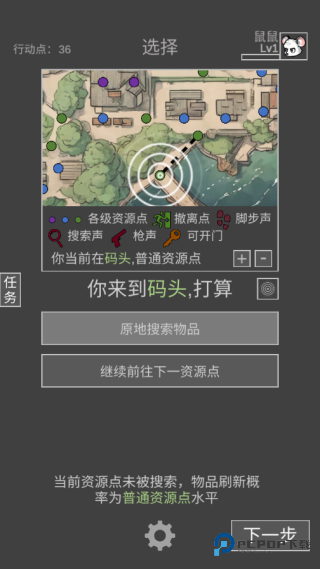 4、开始搜索,点击地点进行选择,不同的地方标点的颜色代表可以搜集到物品的等级;