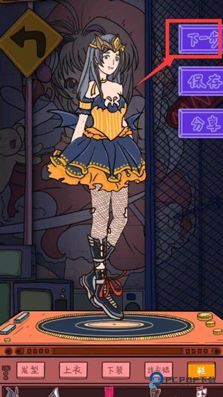 14、自由搭配发型、上衣、下装、鞋等选项,选好点下一步完成换装。