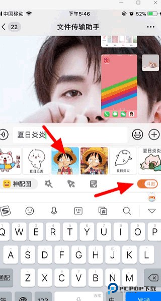 3、点击表情图标之后,就会出现一个斗图的图标,点击打开,打开斗图图标之后,就可以输入文字然后出现表情包了。