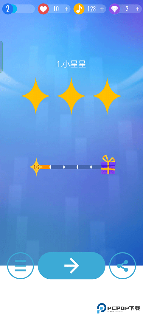6、最后歌曲结束后会评级,争取得到三个皇冠吧。