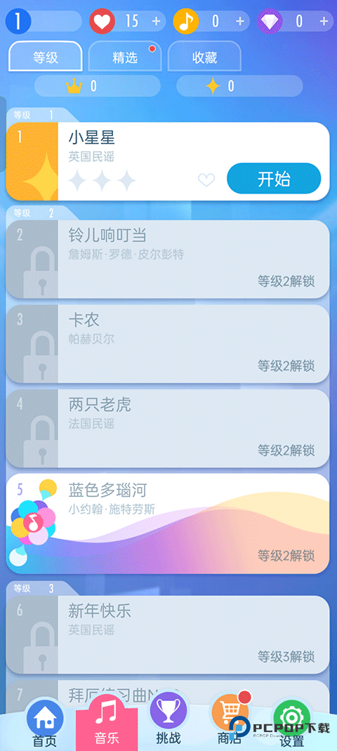 2、选择游戏模式,这里提供了经典、世界民谣、钢琴家挑战赛等多种模式;