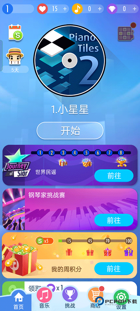 1、首先打开钢琴块2最新版,点击开始游戏;
