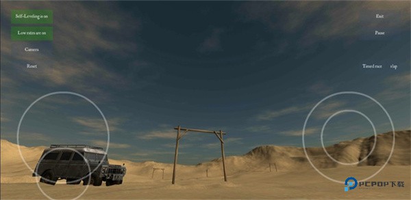 2、进入后可以看到左侧的分别是自调平开启,高帧率开启,第三人称视角和最后的重置;右侧则是退出按钮和暂停按钮;