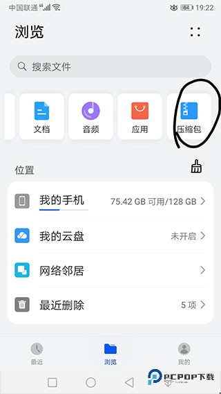 1、下载好文件后,进入文件管理,找到压缩包;