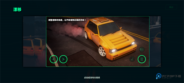 1、以一定的速度接近转弯处,转弯并点击手刹按钮开始漂移