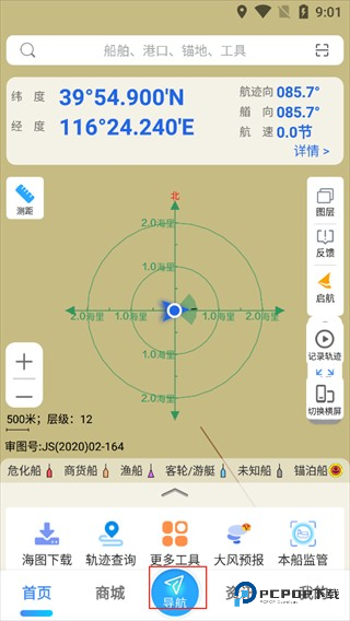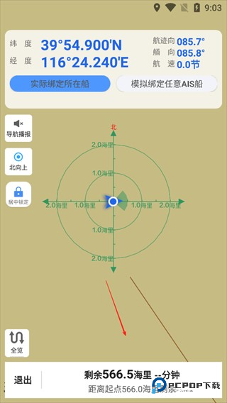 2. 海上距离测量和方向测量。它可以测量出发港、目的港与任意两点之间的直线距离。