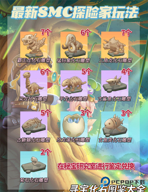 挖宝会得到积分和恐龙化石碎片。去 “探秘商店”,积分可以换到各种好用的化石碎片。而那些直接挖到的完整恐龙化石碎片也别乱花,攒够一套就能换超酷的化石雕塑摆家里啦!